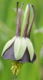 Bloom: Fragrant, ¾” long, nodding to semi-erect flowers with light green sepals and yellow-green to brownish purple petals veering short straight or slightly curved spurs; in loose clusters of three to seven from late spring to early summer