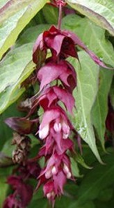 Bloom: Small delicate white flowers hidden by claret-red bracts in pendulous racemes in late summer and early autumn