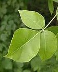 Also known as stinking ash and wafer ash, this deciduous small tree or large shrub is native to North and Central America where it grows in central and eastern US in open woods and prairies. It is a member of the rue family (Rutaceae) which includes citrus trees. The dark reddish brown branches have glands that produce an exude with a unique scent that is also given off by the flowers and bruised leaves. It is generally considered unpleasant although there are some people that find it agreeable. The compound shiny dark green leaves are oval to oblong and are three to five inches long by two to three inches wide. In late spring tiny greenish white flowers appear in terminal clusters and are followed in the fall by round pendulous winged seed pods one inch across, containing two seeds and persisting into mid winter. Hop-tree is drought tolerant and a good choice for a hedge, screen, or specimen especially in a xeriscape. The seedpods resemble hops which accounts for its common name hop tree. The thinness of the seedpod accounts for the common name wafer ash, while the smell of the leaves, flowers,and branches gave rise to the common name stinking ash. The genus name, Ptelea, is the Greek word for elm and refers to the elm like appearance of the seeds. The specific epithet, trifoliata, relates to the three divisions of the leaf.