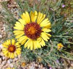 Also known as red dome blanketflower this herbaceous perennial is a native of northern Mexico, south-central and southwestern US where it grows on mesas, in grasslands, open forests and disturbed areas. It is a member of the aster family, Asteraceae, that also includes daisy, yarrow, and lettuce. Plants grow 1-3′ tall and have hairy oblanceolate to spatulate leaves up to 3″ long growing half way up the stem. In some populations the leaves are entire while in other they are lobed or pinnately divided. From late spring to fall solitary flowerheads appear with reddish purple to brown or yellow disc flowers surrounded by 5-14 yellow ray flowers. The ray flowers are deeply 3-lobbed at the tips and sometimes have purple streaks running through them or are tinged with purple or red. The plants are drought tolerant and a good choice for a xerscape, native plant or wildflower garden. The genus name, Gallaridia, honors Gaillard de Charentonneau, a French magistrate and botany enthusiast . The specific epithet, pinnatifolia, comes from the Latin words pinna meaning feather and folium meaning leaf, referring to the venation pattern of the leaves.