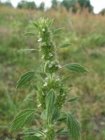 Bloom: Small, white, tubular, two-lipped flowers in whorls in leaf axils in summer