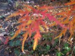 The small walled garden off of our bedroom needed a diminutive, delicate tree and the weeping cutleaf maple I found at a local big box store filled the bill perfectly. The tree grows very slowly and naturally forms a round dome. The leaves are very finely dissected and appear bright green in spring, turning to red in the fall. It occupies a small space in the garden and provided a beautiful backdrop for lady’s mantel, tiarella, cranesbills, and fern-leaf bleeding heart. The red and orange color in the fall is outstanding with mums in the fall, and the leafless weeping branches provide interest in the winter months with the hellebores planted near it. Azaleas and camellia planted near by provide color and contrasting foliage throughout the growing season. Does well in a container or as bonsai.