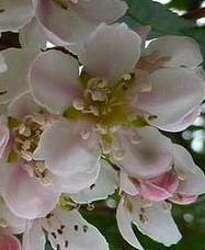 Bloom: Pale pink, five petaled, produced in flat clusters in late spring