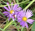 Native to North Carolina and Virginia this herbaceous perennial grows in dry woodlands, forest edges, and abandoned fields as well as was areas such as roadsides. It is a member of the aster family, Asteraceae, that also includes daisy, sunflower, and lettuce. Growing from a rhizomatous root system, plants have one to several erect stems that are 1-3′ tall and covered with soft hairs. The linear to lanceolate leaves that are stiff, rough, and up to 3″ long. In fall 1.25-1.5″ wide flowerheads appear at the tips of leafy bracts. Each flower has 20-30 red to purple ray flowers surrounding yellow disc flowers. The genus name, Sumphyotrichum, comes from the Greek words symph meaning coming together and trich meaning hair and may refer to the anthers of the flowers. The specific epithet, grandiflorus, comes from the Latin words grandis meaning large and flos meaning flowers and refers to the relatively large size of the flowerheads. The genus name aster comes from the Greek/Latin word aster meaning star and refers to the appearance of the flower heads.