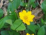 lso called mouse-ear tickseed, this bushy herbaceous perennial is a member of the aster family, Asteraceae, that also includes sunflower, daisy, and lettuce. It is native to southeastern and east-central US where it grows along roadsides and in open woods. Plants grow 4-2 inches tall and form dense colonies by means of stolons. The dark green evergreen leaves are rounded, hairy, and often have one or two ear-like leaflets at the base of the blade that resemble mouse ears. The flowerheads are 1-2″ across and are held singly well above the foliage in spring to early summer. Each flowerhead has a center of yellow disc flowers surrounded by eight ray flowers with toothed tip. The fruit are one-seeded. Bloom time can be extended by deadheading but summer heat usually inhibits flowering. Lobed tickseed is a good choice for borders, rock gardens, or as an edger. The genus name, Coreopsis, comes from the Greek words koris meaning bug, and opsis meaning like and refers to the appearance of the seeds. The specific epithet, auriculata, is from the Latin word auris meaning ear and refers to the appearance of the leaflets at the base of the leaves.