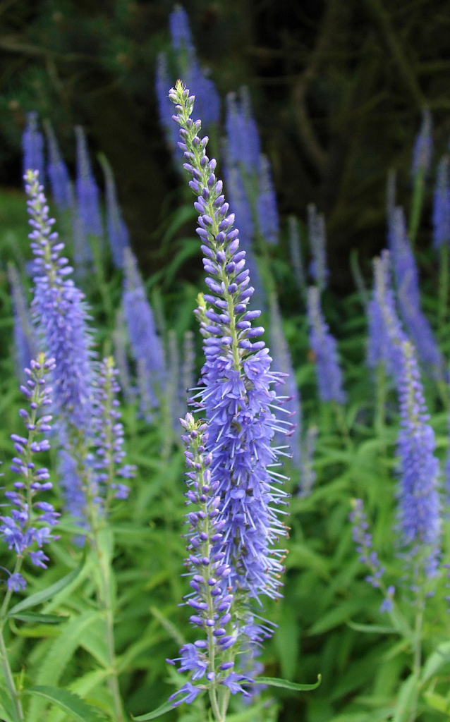 Also known as garden speedwell, this herbaceous perennial is native to Europe and Asia where it grows in grassy areas, meadows, steppes and woodland edges. It is a member of the plantain family, Plantaginaceae, that also includes snapdragon, foxglove and bacopa. The plants form bushy clumps 2-4′ tall and 1-2′ wide and have lance-shaped green leaves that are up to 3″ long and have toothed margins. Lower leaves are typically opposite but leaves just below the flower spike may be whorled. From late spring to early summer, densely packed terminal racemes of 1/4″ wide, blue, star-shaped flowers appear. The racemes are up to 12″ long and the flowers open from bottom to top. Cultivars are available with white and pink flowers. Flowering stems are good cut flowers. Longleaf speedwell is a good choice for borders, edgings, and meadow gardens. The genus name, Veronica, honors St. Veronica who is said to have given her veil to Christ to wipe his face as he carried his cross to Calvary. The specific epithet, longafolia, are from the Latin words longus meaning long, and folius, meaning leaf and refers to the relative size of the leaves.