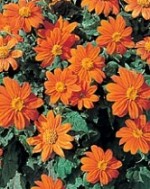 ‘Fiesta del Sol’ is the first truly dwarf Mexican sunflower topping out at 2½’ instead of 5-6’ like other varieties. The plants thrive in heat and humidity, are drought tolerant, and produce masses of daisy-like bright orange flowers from late summer into fall. The attractive foliage and stems are covered with soft fuzz that gives a velvety feel when touched. Butterflies love them but deer don’t. This All American Selections winner is a great plant for middle of the border or even in a container. It is a good cut flower too, just sear the stems in boiling water or over a flame and condition in warm water.