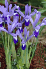 This iris, native to the area of the Caucausus makes its appearance early, about the time that the snow drops, glory-of-the-snow and early crocuses bloom. One of my favorite early spring combinations is a purple-blue iris with a golden yellow crests grown with golden yellow crocuses that bloom at the same time. Smashing! Netted iris, come in white, yellow, and various shades of purple and blue depending on the cultivar. They are fragrant but you have to sniff at close range to appreciate their delicate scent. The grass like leaves grow to 15” after flowering but discretely disappear by late spring when the plant goes dormant. The netted appearance of the bulb gives the plants their species name, reticulata, as well as their common name. Netted iris are excellent used in clusters in rock gardens, at the front of the border, or in forced pots to brighten winter days.