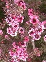 This evergreen shrub or small tree is upright, fine textured, and has dense branching. The narrow leaves are fragrant, dark green to bronze and prickly; the five petaled flowers are about 1 1/4 inches across, white or pink, and cover the branches from early spring to summer. Many cultivars have been developed varying in plant and flower size and flower color and petal number. Tall plants four to ten feet in height can be used as specimens, accents, or focal points while low growing forms eight to twenty-four inches tall can be used in rock gardens, containers, and borders. Some cultivars are attractive as ground covers although they do not suppress weeds. Tea trees prefer sunny sits with excellent drainage, are generally pest and disease free as well as drought tolerant once established. It does best where humidity is low and night temperatures are cool.