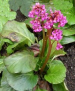 Native to Russia, this herbaceous perennial is a member of the Saxifragaceae family that also includes foam flower, coral bells, and astilbe. The plants form a rosette of shiny, heart-shaped leaves that are up to 10″ longs, leathery and turn bronze to burgundy red in the fall. In early spring, dense panicles of pink flowers appear on leafless stems up to 16″ tall. The famous garden duo, Gertrude Jekyle and Edwin Lutens, produced an outstanding design at Hestercome in England, using bergenia as an edging with lavender. The plants are often grown for the leaves alone which are attractive in borders and as groundcovers as well as in flower arrangements. The flower clusters are also good in the vase. The common name, pigsqueak, comes from the sound made when the thumb and forefinger and rubbed across a leaf. The genus name, Bergenia, honors Karl August von Bergen, 18th century professor at Frankfurt an der Oder. The specific epithet, cordifolia, comes from the Latin words cor meaning heart, and folia, meaning leaf and refers to the shape of the leaves.