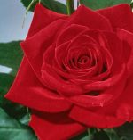 Large dark red flowers up to 5.5″ across appear singly or occasionally in clusters of up to four on long strong stems. The many petals have a heavy substance and the flowers do well in heat and as well as in the vase. Hardy to USDA zone 6, the largest flowers appear in cool climates. The vigorous plants carry large, matte, gray-green leaves that are resistant to mildew but not to blackspot especially in damp climates. The rose honors the 1984 Los Angeles Olympics.