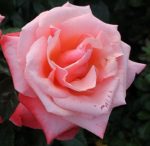 Broad peaked buds open to large flowers 4.7″ across with pale pink outer petals, dark pink inner ones, and apricot ones in between. All of the petals have darker backs and thereby create shadows and depth. The high centered flowers are carried singly or in clusters of up to 5 and have good rain resistance. They are also good in the vase. The compact plants are prickly have dense, dark bronze-green leaves that are generally disease resistance but are susceptible to black spot. ‘Silver Jubilee’ commemorates the 25th anniversary of the accession to the throne by Queen Alizabeth II of England. The rose has been far more popular in England than in the US.
