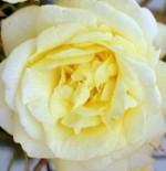 Deep yellow buds open to light yellow flowers that fade to creamy white. The flowers are borne singly or in clusters and have a Hybrid Tea-like form in the first flush, becoming more Floribunda-like with less petals in subsequent flushes. They are about 4.5 inches across, quartered, very full, and have a mild fruity fragrance. Hips round and large. Plants are vigorous and have glossy dark green foliage. They can be used for pillars, porches, arbors, or pergolas and the flowers are good cut flowers. Grows best in warmer climates.