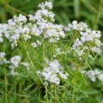 Also called common horsemint and narrow mountain mint, this herbaceous clump-forming perennial is a member of the mint family, Lamiaceae, that also includes rosemary, beebalm, and ajuga. It is native to eastern US from Maine and Wisconsin, south to South Carolina and Texas where it grows in dry and moist soils in prairies, fields, open woodlands, wet thickets, and along streams and roads. Plants grow up to 3′ tall from a taproot with rhizomes and have thin much-branched stems carrying slender leaves up to 3″ long. From mid to late summer terminal flat topped clusters of small white tubular flowers appear. The flowers are 1/4″ long and have two lipped corollas, and are often dotted with purple spots. Various kinds of bees, wasps, flies and butterflies find the flowers attractive but mammals avoid the plants perhaps because of the minty fragrance and taste of all the plant parts. The genus name, Pycnanthemum, comes from the Greek words pyknos meaning dense and anthos meaning flower and refers to the clusters of densely packed flowers. The specific epithet, tenuifolium, comes from the Latin words tenuis meaning slender, and folius meaning leaf and refers to the appearance of the leaves.