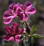 Sticky geranium is a long-lived herbaceous clump-forming perennial and a member of the geranium family, Geraniaceae, that includes both crainsbill (true geraniums) and garden geraniums (Pelargonium). It is native to the mountains and foothills of northwestern North America from Saskatchewan and British Columbia, south to Nevada and California, where it grows in pine forests, mountain meadows, hillside scrub, grassy plains, and wet land-riparian sites. Plants grow 1-3′ tall from a long taproot and have stout branching stems and bright green leaves that are both densely covered with sticky hairs. The palmate leaves are mostly basal, long stalked, and deeply divided into 5-7 toothed lobes. From early spring into summer pinkish-lavender to purple flowers with reddish veins appear in loose clusters well above the leaves. Each saucer-shaped flower is up to 1.5″ wide and has 5 sepals and 5 long, rounded, slightly notched petal. The fruits are hairy and have a long beak shaped like a crane’s neck, hence the common name crainsbill. The seeds are tipped with an elongated tail that coils with maturity and facilitates seed dissemination. The genus name, Geranium comes from the Greek word geranos meaning crane and refers to appearance of the seed. The specific epithet, viscossissimum, is the from the Latin word visco meaning to make sticky and refers to the the leaves and stems of the plant.