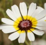 Native to North Africa, this bushy cool weather annual is a member of the aster family, Asteraceae, that also includes sunflower, yarrow, and lettuce. Plants grow 2-3′ tall and have somewhat succulent pinnately divided leaves with linear lobes. The flowerheads are 2-2.5″ wide and have white ray flowers with a yellow ring at the base forming a circle around the disc flowers that are usually purple. Flowering starts in the summer lasts about 8 weeks, and ends in the early fall. Cultivars are available that vary most significantly in height, fullness, and color. Tricolor daisy is a good choice for wildflower gardens and cutting gardens. The genus name, Chrysanthemum, comes from the Greek words chrysos meaning gold and anthos meaning flower and refers to the bright yellow color of at least one of the species. The specific epithet, carinatum, is the Latin word meaning having a keel.