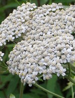 White yarrow is a clump-forming perennial native of southeast Europe and a member of the aster family, Asteraceae, that also include daisies, goldenrod, and lettuce. The gray-green foliage is finely pinnately dissected, lobed, and feathery. The flat flowerheads appear in the summer and are three to four inches across. They are composed of small tightly packed, white, daisy-like flowers. Although not often used in American gardens white yarrow is popular in England and offers good white yarrow on tall strong stems. Vigorous root may lead to plant becoming invasive. Good in both fresh and dried arrangements.