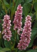 Bloom: Funnel-shaped, rose-red flowers in terminal dense cylindrical spikes two to three inches long from summer to early fall; turn pink and then white as they mature.
