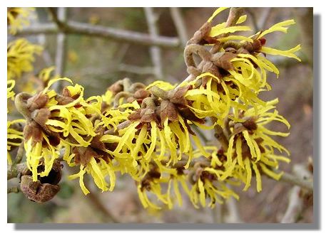 Nothing is more welcome in winter or early spring then when the first plant blooms. Witch hazel is usually that plant with its shaggy looking red or yellow fragrant blooms on leafless stems. This is a shrub to plant close to a window so that you can enjoy all that it has to offer from the warmth and comfort of your home. And in the fall witch hazel rewards you with its lovely autumn coloration ranging form yellow, through orange to red.