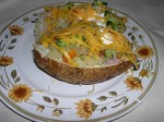 As a kid I ate several baked potatoes a week because my mother believed they were the perfect food. I still have a great fondness for them and when I visited a Potato Valley Cafe where they served baked potatoes with many different fillings I knew I had to revitalize my potato repertoire. My favorite is this ham and cheddar version and we frequently have it for dinner. I serve the various fillings in bowls and let people load their own potatoes. Serves 4.