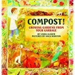 Linda Glazer’s book, Compost! Growing Gardens from Your Garbage, is a simple introduction to composting. In the words of a little girl, it tells the story of how a family builds a compost pile from the table and garden waste, maintains it, and then uses it to grow a new garden. The table waste includes scraps that every child can identify such as banana peels, bread crusts, carrots skins and apple cores plus lima beans that the little girl prefers to compost rather than eat . The moldy jack-o-lantern from Halloween, grass clippings, fallen leaves, and debris from the vegetable and flower gardens are included as are the droppings from the family’s pet rabbit, Lopsy. The little girl waters the pile with a hose, and Mom turns it over every few weeks, so that soon the children feel heat from the pile and later notice that the garbage no long smells or looks like garbage but looks like dark brown soil. The family plants vegetables and flowers with the compost and the cycle begins again. Two pages of questions and answers about composting provide adult readers with additional information including specific directions for a compost pile and instructions for an experiment creating a mini compost bin.