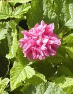 Also known as salmonberry this deciduous shrub is native to moist forests and stream margins of the west coast of North America from west central Alaska to California, east to Idaho. The stems are covered with fine prickles and carry pinnately compound leaves with three toothed leaflets 1-3 inches long. In early spring rich cerise double flowers appear that give way to translucent coral fruits, attractive to birds.