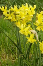 Several miniature flowers are borne on each stem for six weeks in spring. The flowers look just like trumpet daffodils and have pale canary yellow petals with a lighter yellow trumpet. Natualize well in semi-shady areas.