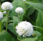 Native to Texas and Mexico, this annual grows 1-3′ tall, depending on the cultivar, and has stiff branching stems and lanceolate leaves that are 3-4″ long, slightly hairy, and almost sessile. The globose flowerheads are up to 1.5″ across and consists of colorful papery petal-like bracts and relatively few tiny yellow flowers. The bracts may be white, lavender, pink, red or magenta. Plants flower all summer long and each flowerhead has a long bloom time. The flowerheads are good in fresh or dried arrangements.