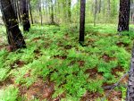 Christmas fern is native to eastern North America from Florida and eastern Texas north to Nova Scotia and west to Minnesota where it grows in shady woodlands, stream banks, and rocky slopes. It grows 1-2′ tall and slowly forms clumps of about 20 fronds and 1-2″ wide. The fronds are coiled and have white scales when they emerge as crosiers in early spring but are leathery, dark green and 12-32″ long when mature. Each frond is supported by a dark brown to black stem-like structure (stipe) that carried 20-35 pairs of leaflet-like pinnae that are up to 2″ long and have a thumb-like lobe at the top and fine double toothed (serrulate) margins. Groups of brown spores (sori) almost cover the underside of the pinnae in the upper 1/3 to 1/2 of the fertile fronds. Fertile fronds are longer than sterile fronds and die back in the winter. Plants are tolerant of drought and shade and are a good choice for woodland and shade gardens as well as for erosion control.