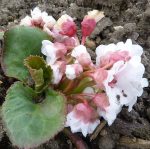 Similar to B. cordifolia but leaves are spoon-shaped rather than heart-shaped, flowers are held higher over foliage, and the flowering stem is branched. Leaves turn deep pink in winter.