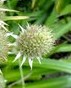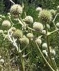 This tall sea holly is native to southern Brazil, Paraguay, Uraguay, Argentina and Chile where it grows in marshes and wet, grassy places. The leaves of the basal rosette are 1.5 feet long and armed with small spines. The branched stems rise high above the rosette and carry light green, ball-like flowerheads ½” across. The bracts are inconspicuous.