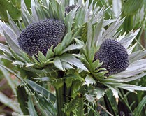 Another large sea holly, this native of the Caucaus short lived and should be treated as a biennial. The basal leaves are heart-shaped and spineless; the huge blue flowers are three to four inches across and subtended by eight or nine long toothed bracts.