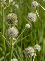 A native of eastern and central US where it grows in woods and prairies, this sea holly has a basal rosette of long, sword-shaped leaves up to three feet long that resemble those of Yucca. Tall, smooth, stiff stems carry clusters of greenish white flowerheads one inch across and subtended by white, pointed bracts.