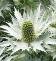 This little known sea holly hails from the mountains of Morocco and is evergreen. The small spiny leaves are rounded and have conspicuous white veins that add to the attractiveness of the plant. Stiff erect stems bear the small rounded silver-blue flowerheads and long linear white bracts.
