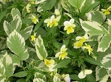 For a spring combination that will brighten the wakening garden try growing yellow and white Johnny Jump Ups. Plant the Johnnies in the fall after the bishop’s weed has succumbed to frost, enjoy them all winter, and then enjoy the bishop’s weed as it emerges in the spring with its creamy white edges. In warm climates the Johnnies will fade by the beginning of summer but the colorful leaves of the bishop’s weed will last well into fall. It will even bloom with white Queen Anne ’s lace type of flower heads but the real value of the plant is the foliage. Beware, however, the bishop’s weed can become invasive if it likes its location; part sun to part shade and plenty of moisture.