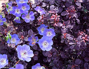 Cranesbill ‘Rozanne’ and barberry ‘Concord’ are outstanding plants for the garden and when put together they make a fabulous combination that lasts for the whole growing season. In early spring barberry ‘Concord’ puts out new clusters of deep burgundy red foliage followed by small yellow flowers that are soon hidden underneath the new growth of leaves. Soon, cranesbill ‘Rozanne’ begins to produce its striking purple-blue flowers continues to bloom until fall. Barberry ‘Concord’ , not to be out done, turns bright red in the fall before dropping its leaves for winter. Both plants like full sun to part shade, and moist, well-drained soil.