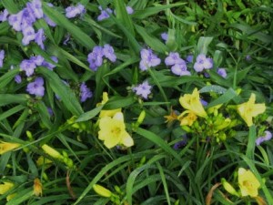 Start the season with the sparkling blue of spiderwort while the day lily foliage emerges; then add the lemon yellow of the “Happy Returns’ flower and you have a very pleasing combination that will last for weeks. Even after the spiderwort declines, ‘Happy Returns’ will continue flowering and its foliage will be attractive until frost. Both plants tolerate a wide range of soils and partial shade but do best in well-drained soil and full sun.