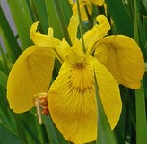 Tall and slender, this rhizomatous, non-bearded iris is native to wetlands in Europe, the Middle East, northern Asia and northern Africa. It is an adaptable plant and although does best when growing in water or constantly moist soil, can grow in dryer areas if watered during dry spells. The bright yellow flowers are about two inches wide and often have brown veins and brown blotch on the falls. The leaves are sword-shaped, two to three feet long, and bright green. The large fruit capsules are attractive in dried bouquets.