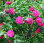 A profusion of light crimson purple flowers are produced in clusters of three to ten for six or seven weeks in the beginning of the season and sporadically through the summer until a big flush in the fall. The arching stems are prickly and densely covered with pale green glossy leaves. They can be pruned to form a shrub or allowed to grow freely into a cascading bush. This was the first rose in the Explorer Series and commemorates the Genoese sailor who first went looking for the Northwest Passage.