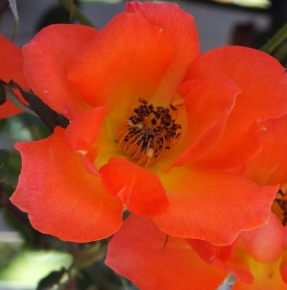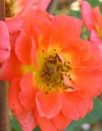 A climbing miniature often sold as a patio climber,’ Rosalie Coral’ is covered with clusters of three to eight orange flowers with yellow eyes. The abundant leaves are small, dark green, and shiny.