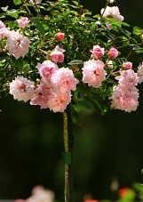 Rose standards can add color, verticality and structure to a any garden. Many different kinds of roses can used for making standards and miniature roses are especially desirable because they can provide both small flowers that create a delicate look on the bush and small leaves to enhance the effect. Climbing miniatures can also offer a relaxed habit that is desirable for weeping standards.