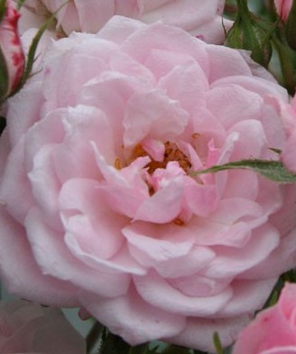 A climbing minature, ‘Jeanne Lajoie’ is floriferous with clusters of tent to forty mid-pink flowers fading to white. New leaves are red before turning dark green.