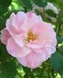 Pale apricot pink flowers are borne singly or in small clusters and have a hint of mustard yellow at the center and the form of old garden roses.