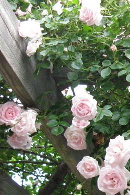 Pale pink flowers are produced in small clusters and are good in the vase. ‘New Dawn’ was the first of the modern climbers and the first plant to be patented.