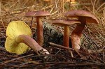 Found singly or in clumps from summer through fall, this plum-streaked fungi grows on stumps and logs in coniferous woodlands in the northern temperate zone including North America. It grows 2.5 to 4.5 inches tall with a cap two to six inches across. The cap is hemispherical with an inrolled margin at first but flattens with age. It has a velvety appearance but often splits and takes on scaly patches as it matures. The gills are crowded, almost free from the stem, and bright yellow at first but turn dark with time. The stem is often curved, scaly, and yellow with splashes of plum on the bottom. The spores are white.