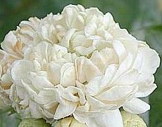 A native of Southeast Asia, this evergreen jasmine was brought to Arabia and from there to Europe when the Arabs took over Spain. It is cultivated for making perfume and tea. Two outstanding cultivars are ‘Maid of Orleans’ with very large overlapping extra petals, and ‘Grand Duke of Tuscany’ that is fully double but has less fragrance than other jasmines.